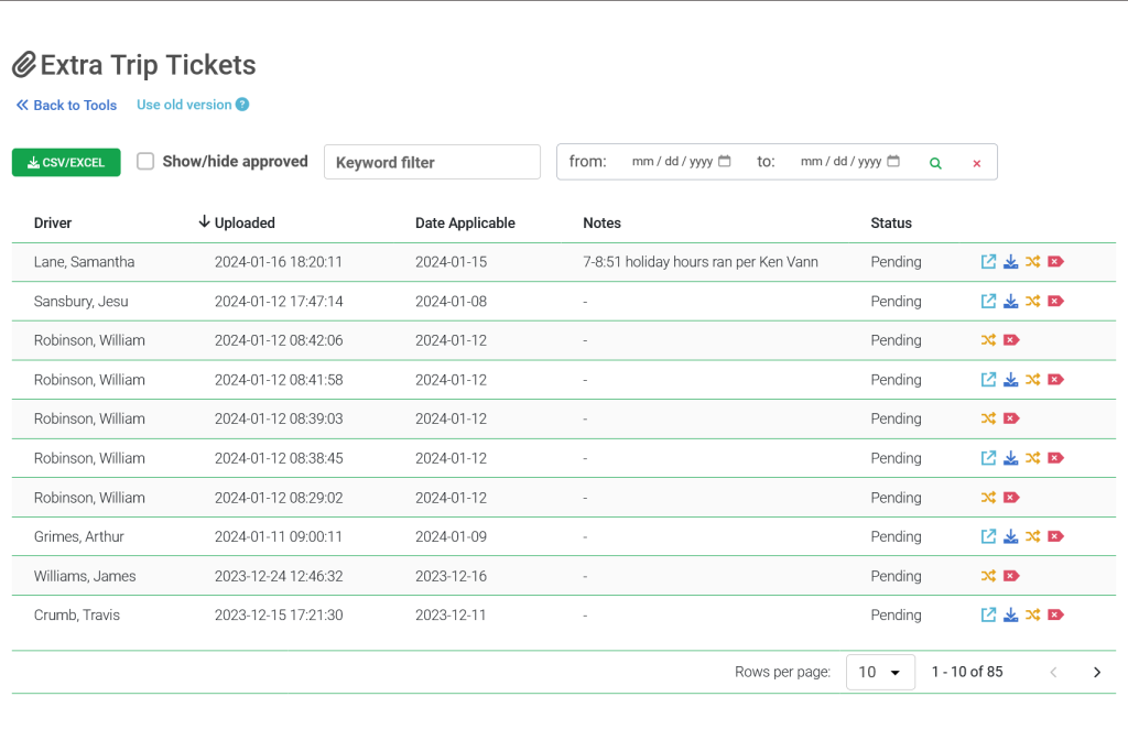 Review extra trip tickets submitted by drivers, and convert them into timesheet hours